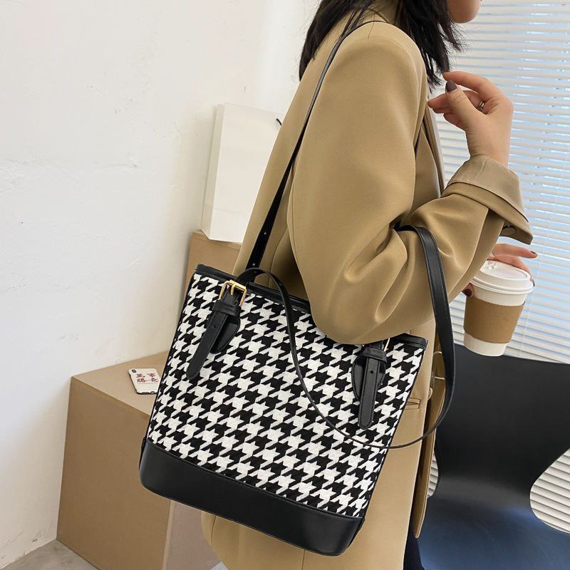 Sacs à bandoulière pied-de-poule Vintage pour femmes grande capacité