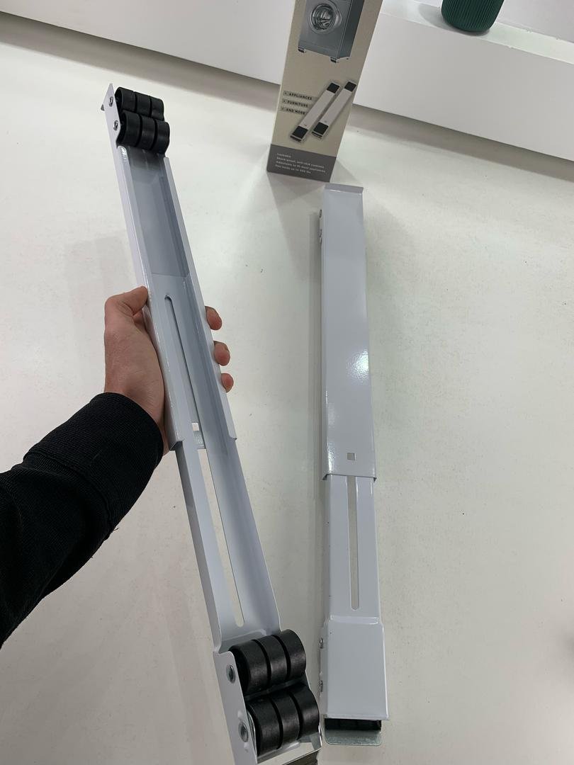 🧺 ثبات وقوة لكل أجهزتك المنزلية! قاعدة دعم متحركة للغسالات والثلاجات 🛡️ قاعدة مجهزة بقدم مطاطية مع خاصية الشفط لمنع الانزلاق وتقليل الاهتزازات والضوضاء. ⚙️ ارتفاع ثابت 4 سم لمزيد من الثبات. 💪 تتحمل وزنًا يصل إلى 300 كغ، وتُستخدم للغسالات، الثلاجات، المجففات، الأرائك، وخزائن التخزين. 📏 الطول القابل للتعديل: 45-70 سم – العرض: 5 سم 🎨 ألوان متوفرة: أبيض – فضي
