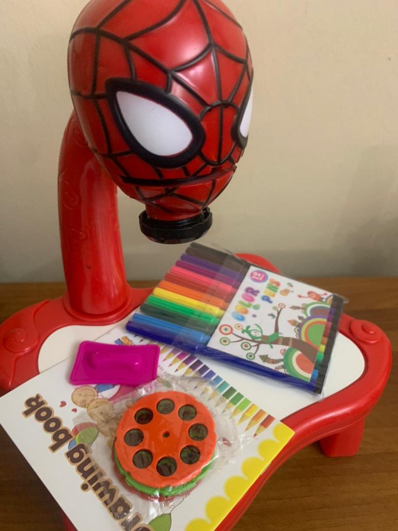 وصف المنتججهاز عرض للرسم للأطفال على شكل زرافةتصميم جذاب: جهاز عرض لطيف على شكل زرافة بألوان زاهية لجذب انتباه الأطفال وتشجيعهم على الرسم والتلوين.طريقة الاستخدام: يعمل بثلاث بطاريات AA (غير مشمولة)، مع 6 شرائح عرض تحتوي على 36 صورة مختلفة، ويمكن مسح الرسومات بسهولة بالإسفنجة المرفقة لإعادة الاستخدام.تحفيز المهارات: يساعد الطفل على تحسين مهارة التحكم باليد والأصابع ويعزز الإبداع والخيال منذ سن مبكرة.مجموعة متكاملة: تشمل الجهاز، طاولة رسم، إسفنجة، دفتر للرسم، و12 قلم تلوين.المادة: بلاستيك آمن للأطفال.الأبعاد: الطاولة 25×21×35 سم، ارتفاع السطح عن الأرض 13 سم، وارتفاع جهاز العرض عن الطاولة 16.5 سم.مناسب للأطفال من عمر 3 سنوات فأكثر.