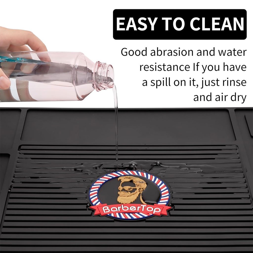 حصيرة تنظيم أدوات الحلاقة متعددة المناطقتصميم عملي: مقسمة لمناطق مختلفة لتسهيل تنظيم الأدوات بسرعة.حماية إضافية: تحتوي على 3 مغناطيسات لتثبيت الماكينات، مع حواجز أمامية تمنع انزلاق الأدوات، وظهر لاصق للتثبيت على الزجاج والأسطح الملساء.مساحة واسعة: يمكنها استيعاب 10 أدوات حلاقة على الأقل، وقابلة للطي للتخزين بسهولة.متينة وسهلة التنظيف: مصنوعة من PVC عالي الجودة مقاوم للماء والبقع والروائح.استخدامات متعددة: مناسبة للحلاقين، المقاهي، المطبخ، طاولات الطعام كمفرش مقاوم للانزلاق والاتساخ.