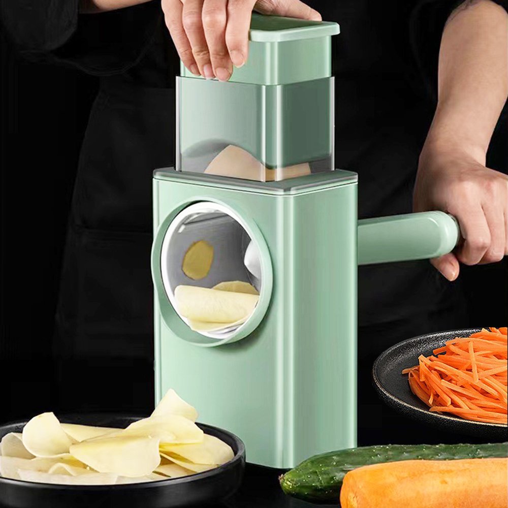 مفرمة / مبشرة خضروات متعددة الوظائفميزة الإدخال الأوسع: فتحة كبيرة بحجم 102×85 مم لتقطيع الخضروات والبطاطس الكبيرة بسهولة.أداة متعددة الاستعمالات: شفرات من الفولاذ المقاوم للصدأ بتصميم آمن، مثالية للجبن، البطاطس، الجزر، الخيار، المكسرات، والبسكويت.أداء أسرع: تصميم الأسطوانة الدوارة يقطع المكونات أسرع 5 مرات من المبشرات التقليدية وحتى 30 مرة أسرع من السكاكين العادية.آمنة وسهلة التنظيف: لا حاجة للكهرباء ولا لمس الشفرات، قابلة للفك وتوفير مساحة.المواد: PP + فولاذ مقاوم للصدأ.اللون: أخضر.الوظيفة: تقطيع / بشر / طحن.