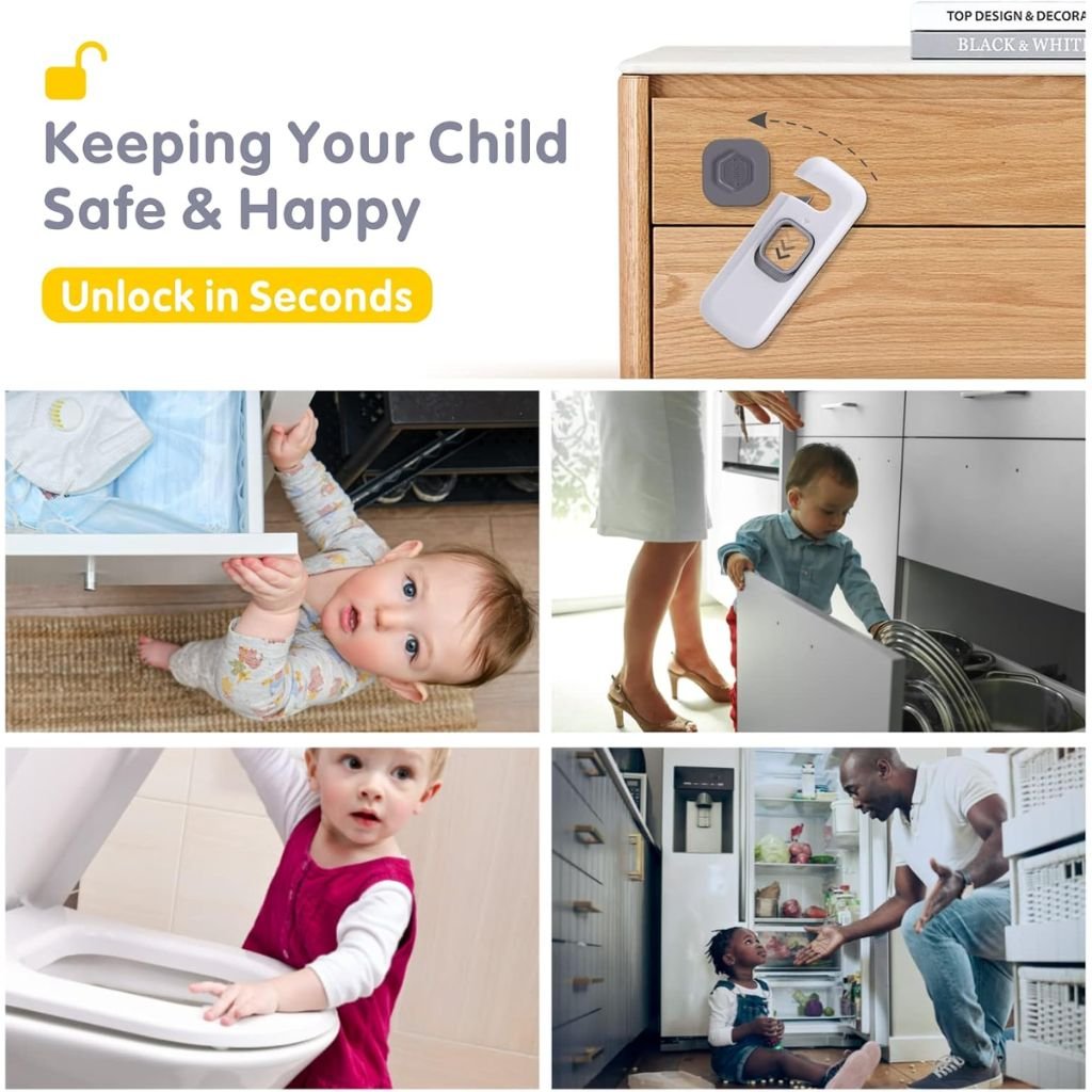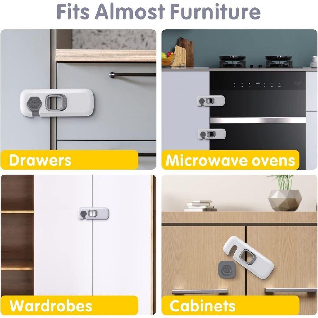 أمان للأطفال أقفال أمان تمنع الأطفال من الوصول للخزائن، الأدراج، الثلاجات وغسالات الصحون لتقليل مخاطر الحوادث المنزلية.تركيب سهل تثبيت بلا حفر أو أدوات بفضل لواصق قوية ومتانة عالية.تصميم عالمي متوافقة مع معظم الأثاث والأجهزة المنزلية.مواد عالية الجودة مصنوعة من مواد غير سامة ومتينة لضمان الاستخدام الآمن.سهولة الاستخدام آلية فتح وإغلاق سهلة للكبار وآمنة للأطفال.