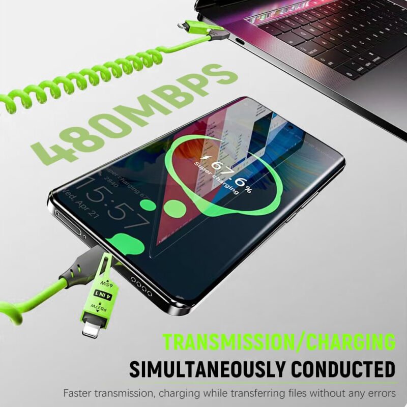 Câble USB 4en1 à Ressort Fast Charge 65 W – كابل شحن سريع